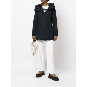 logo-patch zip-up hoodie from WOOLRICH featuring navy blue, cotton blend, padded design, down-feather filling, classic hood, front zip fastening and long sleeves. Boulder parka coat Size and Fit - This piece fits true to size. We recommend you get your regular size. Model is 1,75m / 5ft 8in wearing size S