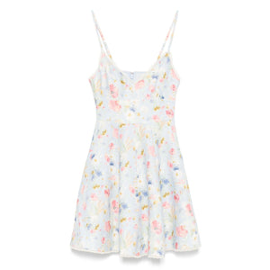 light blue concealed rear hook and zip fastening adjustable spaghetti straps two side slit pockets smocked panel Lucky linen mini dress Size and Fit - This piece fits true to size. We recommend you get your regular size. Model is 1,75m / 5ft 8in wearing size 1 (NUM)