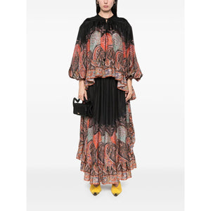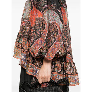 black self-tie fastening elasticated cuffs ruffle hem paisley print Rhiannon printed silk blouse Size and Fit - This piece fits true to size. We recommend you get your regular size. Model is 1,75m / 5ft 8in wearing size 1 (NUM)