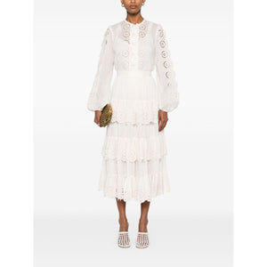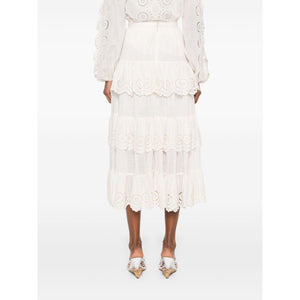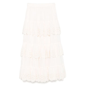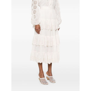 white rear zip fastening high-rise A-line Lucky embroidered midi skirt Size and Fit - This piece fits true to size. We recommend you get your regular size. Model is 1,75m / 5ft 8in wearing size 1 (NUM)